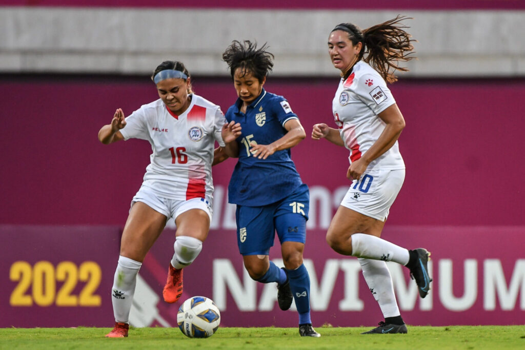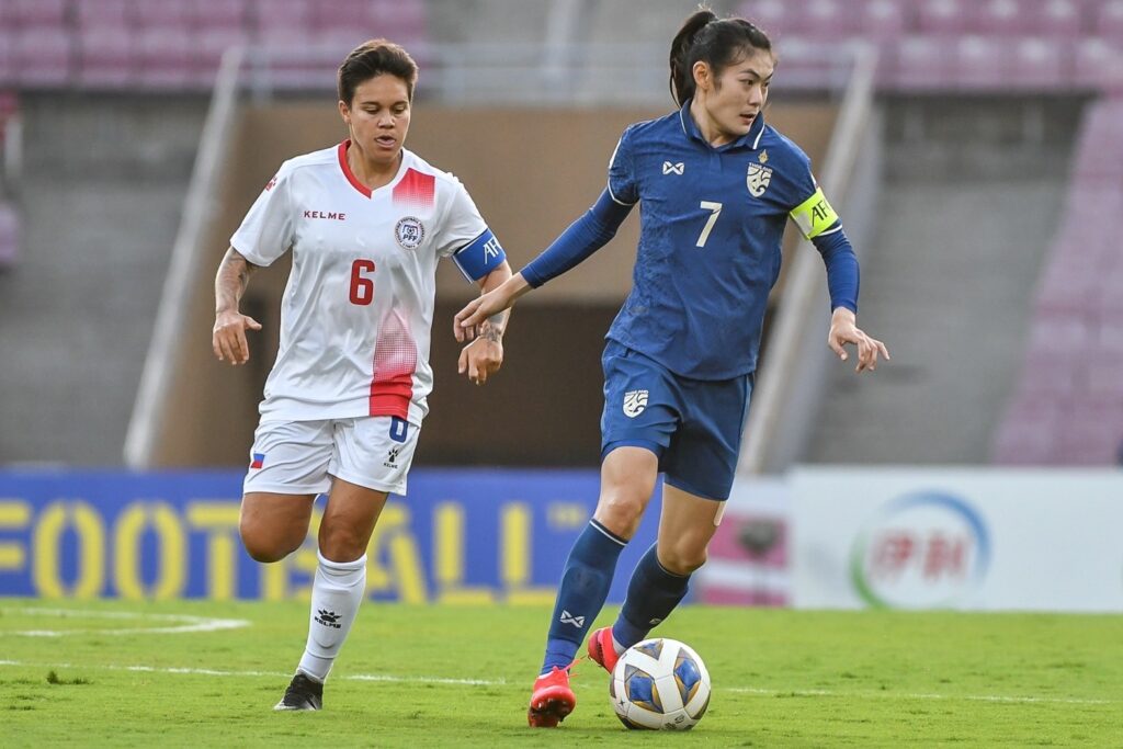 อินเดีย 21 ม.ค.-ฟุตบอลหญิงชิงแชมป์เอเชีย รอบสุดท้าย รอบแบ่งกลุ่ม กลุ่มบี นัดแรก ทีมชาติไทย พบกับ ทีมชาติฟิลิปปินส์ เกมนี้ มิโยะ โอกาโมโตะ กุนซือทีมชาติไทยชาวญี่ปุ่น ส่ง 11 ตัวผู้เล่น ประกอบด้วย วราภรณ์ บุญสิงห์ (GK) – กาญจนาพร แสนคุณ, พรพิรุณ พิลาวรรณ, ศิลาวรรณ อินต๊ะมี, นิภาวรรณ ปัญโญสุข, วารุณีเพ็ชร์วิเศษ, ณัฐวดี ปร่ำนาค, เสาวลักษ์ เพ็งงาม, อรพินท์ แหวนเงิน, ชัชวัลย์ รอดทอง, สุชาวดี นิลธำรงค์