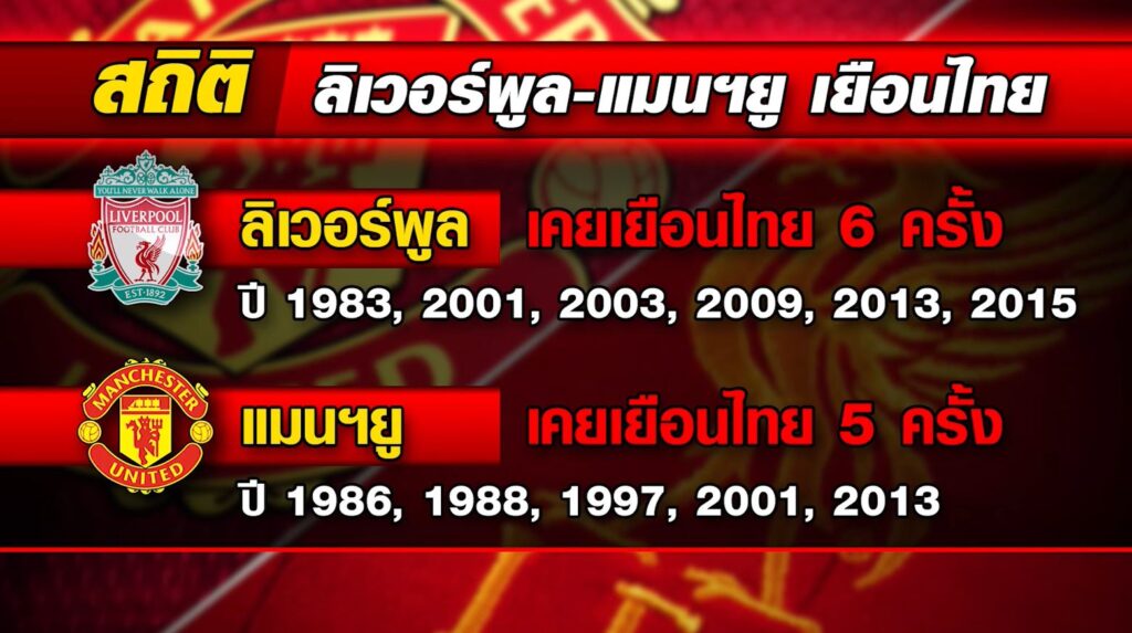 โดยที่ผ่านมาทั้งสองทีมเคยเดินทางมาโชว์ฝีเท้าให้แฟนบอลชาวไทยได้ชมกันหลายครั้ง ลิเวอร์พูล เคยมาเยือนไทย แล้ว 6 ครั้ง ในปี 1983 , 2001, 2003, 2009, 2013, 2015 ส่วนแมนฯ ยู เคยมาเยือนไทย 5 ครั้ง ในปี 1986, 1988, 1997, 2001, 2013 ซึ่งเมื่อกระแสข่าวนี้เกิดขึ้น ทำให้แฟนบอลชาวไทยของทั้งแมนฯ ยู และลิเวอร์พูล ที่มีจำนวนมากกว่า 20 ล้านคน ต่างเฝ้ารอศึกแดงเดือดครั้งประวัติศาสตร์นี้