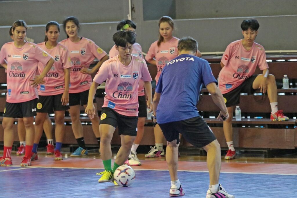 4 ก.พ.64-ความเคลื่อนไหวทีมฟุตซอลหญิงทีมชาติไทยชุดป้องกันเหรียญทองซีเกมส์ 2022 ที่เวียดนาม ยังคงเดินหน้าลุยฝึกซ้อมต่อเนื่องกันอย่างเข้มข้น ที่โรงยิมภายในมหาวิทยารามคำแหง เข้าสู่สัปดาห์ที่สาม ใช้เวลาฝึกซ้อม 3 ชั่วโมงเต็ม โดยการซ้อมยังเน้นไปที่การเร่งความฟิตปรับสภาพร่างกายการขึ้นเกมรุกและการยืนตำแหน่งในเกมรับ