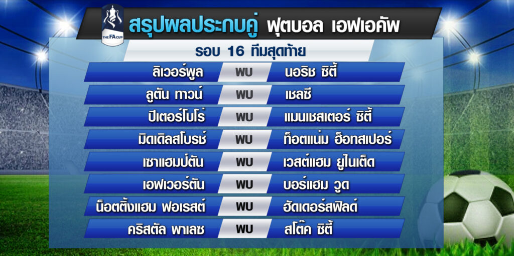 สรุปผลประกบคู่รอบ 16 ทีมที่จะแข่ง 3 มีนาคมนี้