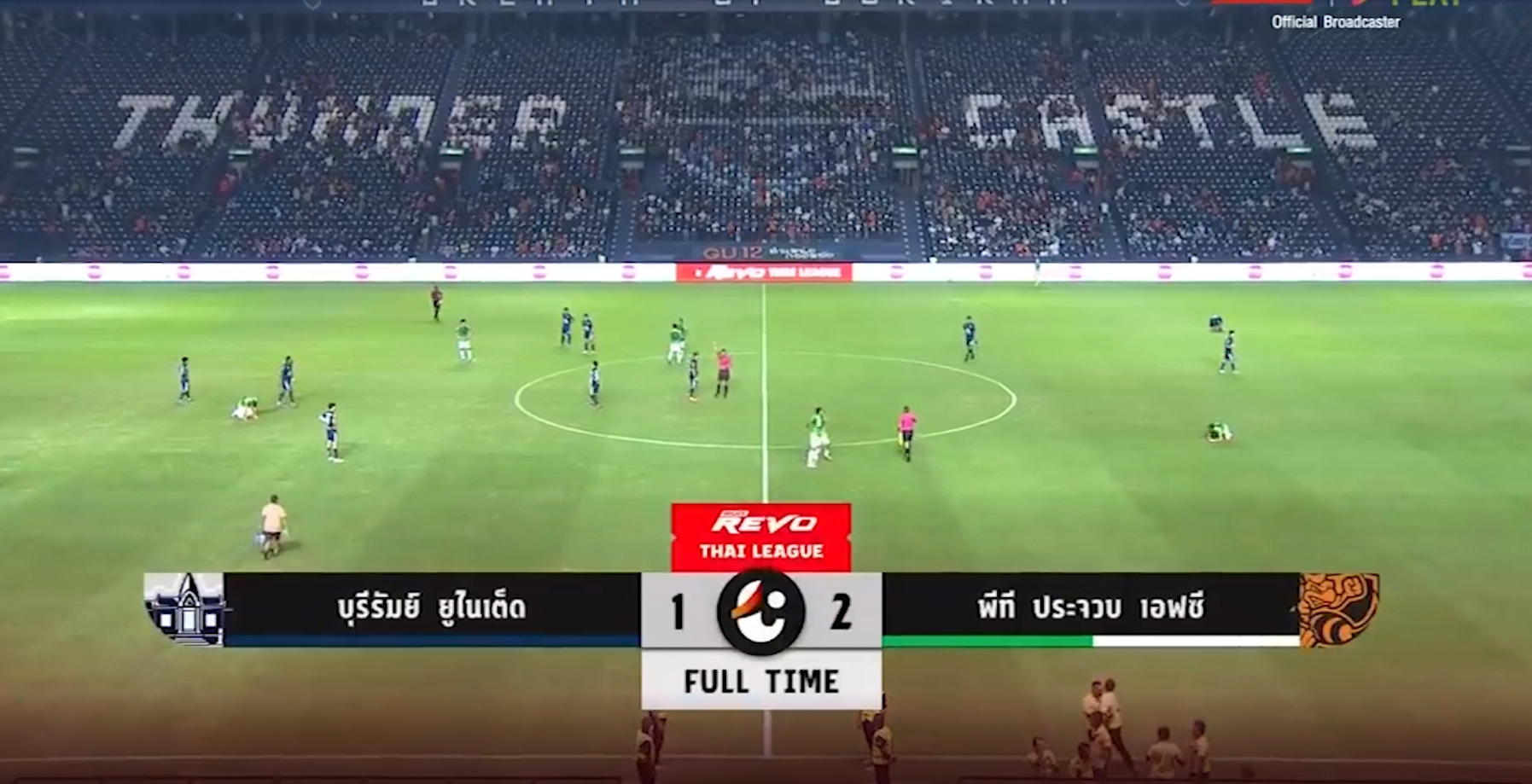 ฟุตบอลรีโว่ไทยลีก นัดที่ 20 ที่สนามช้างอารีน่า “ปราสาทสายฟ้า” บุรีรัมย์ ยูไนเต็ด ทีมจ่าฝูง ชุดสีน้ำเงิน ที่ยังไม่แพ้ใครในบ้านในฤดูกาลนี้ พบกับ พีที ประจวบ เอฟซี ทีมอันดับ 15 ที่กำลังลุ้นหนีตกชั้น นาที 13 พรรษา เหมวิบูลย์ มาทำประตูให้บุรีรัมย์ ขึ้นนำก่อน 1-0 แต่จากนั้น นาที 68 บุรีรัมย์ มาได้จุดโทษแต่โจนาธาน โบลินกี้ ยิงไปติดเซฟขวัญชัย สุขล้อม ผู้รักษาประตูของประจวบปัดออกมาได้ หลังจากนั้นนาที 78 ประจวบมาได้จุดโทษบ้างจากจังหวะแฮนด์บอลของชิติพัทธ์ แทนกลาง และเป็นวิลเล่น โมต้า ยิงเข้าไปเสมอกัน 1-1 และนาที 85 กลับประจวบมาได้ประตูชัย จากการยิงของแพทริค ไรท์เชลล์ ตัวสำรองช่วยให้พีที ประจวบ เอฟซี บุกมาชนะ บุรีรัมย์ 2-1 และเป็นการแพ้ครั้งแรกเกมในบ้านของบุรีรัมย์ในฤดูกาลนี้ ส่วน ประจวบ มี 17 คะแนน ยังอยู่อันดับ 15