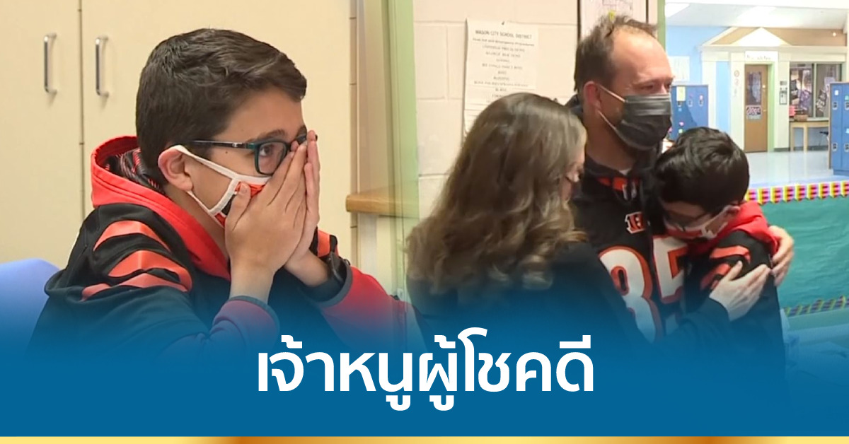 สหรัฐ 10 ก.พ.- เจ้าหนูวัย 12 ปี ในรัฐโอไฮโอ ของสหรัฐ ได้รับตั๋วเข้าชมศึกอเมริกันฟุตบอลเอ็นเอฟแอล นัดชิงแชมป์ซูเปอร์โบว์ล ครั้งที่ 56 จากเจ้าของทีมอินเดียนาโพลิส โคลท์