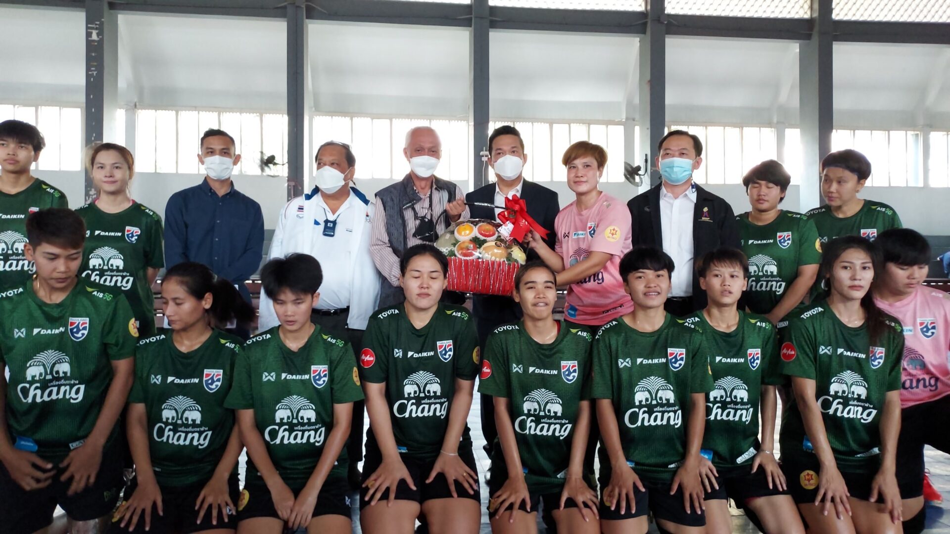 12 ก.พ.65-ที่ยิมเนเซียม 2 ภายในมหาวิทยาลัยรามคำแหง “บิ๊กแนต” นายกองเอก ชัยภักดิ์ ศิริวัฒน์ รองประธานคณะกรรมการโอลิมปิคและมนตรีซีเกมส์ พร้อมด้วย นาย วรศักดิ์ ขันติบัณฑิต ผู้อำนวยการกองพัฒนากีฬาเป็นเลิศการกีฬาแห่งประเทศไทย และ นาย อัครพร พึ่งพร หัวหน้างานแข่งขันกีฬาระดับนานาชาติการกีฬาแห่งประเทศไทย ได้เดินทางเข้าเยี่ยมชมและให้โอวาทกับฟุตซอลฟุตซอลหญิงทีมชาติไทย ระหว่างฝึกซ้อมเตรียมความพร้อมในการป้องกันเหรียญของซีเกมส์ ที่ประเทศเวียดนามช่วงเดือน พฤษภาคม นี้ โดยมี “บิ๊กป๋อม” อดิศักดิ์ เบ็ญจศิริวรรณอุปนายกสมาคมกีฬาฟุตบอลแห่งประเทศไทยฯ ให้การต้อนรับ