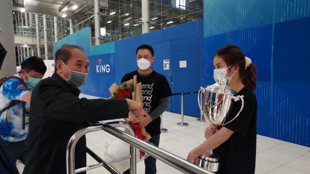 สนามบินสุวรรณภูมิ 20 ก.พ.-“มิ้งค์ สระบุรี” หอบถ้วยแชมป์โลกเดินทางกลับถึงเมืองไทยอย่างอบอุ่น เจ้าตัวยอมรับกดดันทุกวินาทีกับแชมป์ประวัติศาสตร์ ขณะที่ “คิวทอง” ศักดา รัตนสุบรรณ เชื่อมั่นการแข่งขันสมัครเล่นโลก เป็นไปได้สูงที่จะคว้าแชมป์เป็นสมัยที่ 3