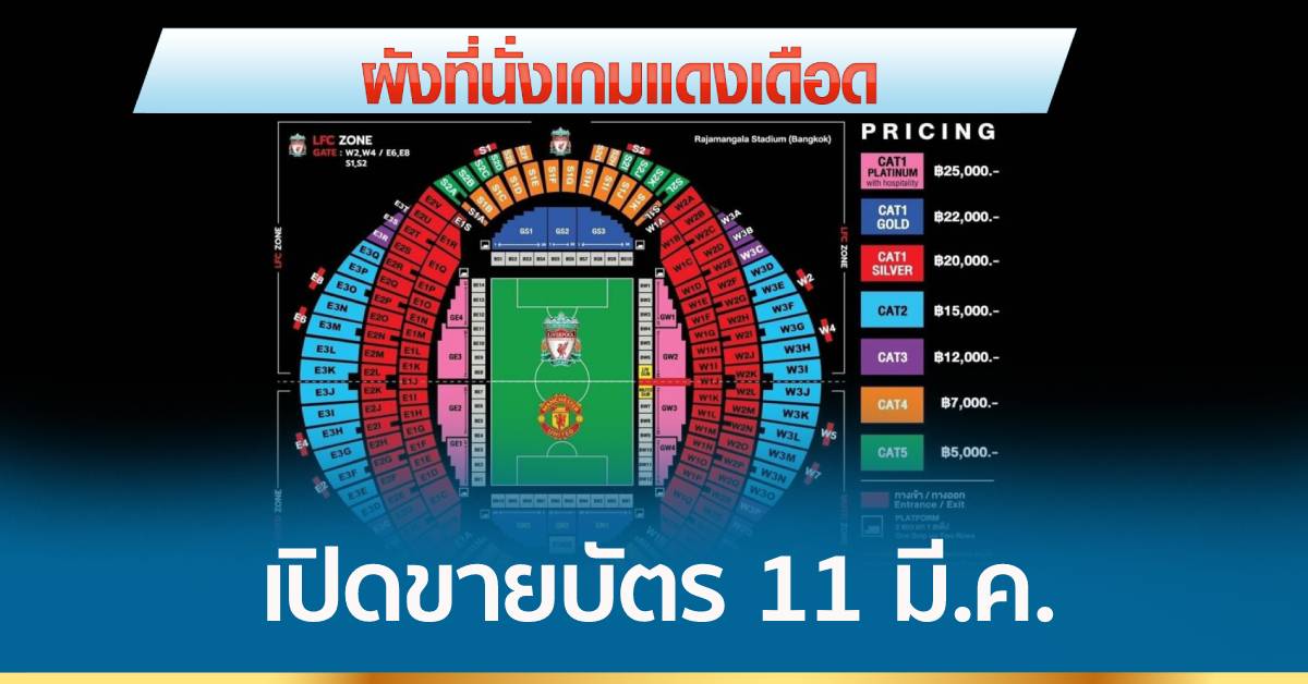 สำหรับศึกแดงเดือด แมนฯ ยูไนเต็ด พบ ลิเวอร์พูล จะมีขึ้นในวันที่ 12 กรกฎาคม ที่สนามราชมังคลากีฬาสถาน ราคาบัตรถูกสุด 5,000 บาท แพงสุด 25,000 บาท โดยจะมีการแถลงข่าวอย่างเป็นทางการ ที่แฟชั่น ฮอลล์ ชั้น 1 สยามพารากอน ในวันที่ 9 มีนาคม เวลา 15.00 น.