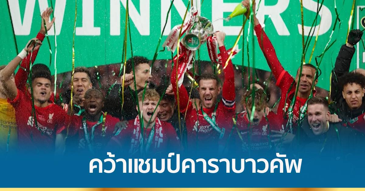 ฟุตบอลคาราบาว คัพ 2021/22 รอบชิงชนะเลิศ ที่สนามเวมบลีย์ ลิเวอร์พูล พบกับ เชลซี ก่อนเกมได้มีการให้กำลังใจยูเครน และต่อต้านรัสเซียด้วย สำหรับเกมนี้กินกันไม่ลง เสมอกัน 0-0 ใน 90 นาที และช่วงต่อเวลาพิเศษอีก 30 นาที แม้ว่าเกมนี้ทั้ง 2 ทีมจะทำประตูได้แต่เจอ VAR ริบประตู ทำให้ต้องดวลจุดโทษตัดสินเพื่อหาแชมป์ ปรากฏว่าต้องยิงกันถึง 11 คน โดยคนสุดท้ายของเชลซี เกปา อาร์ริซาบาลากา ผู้รักษาประตูชาวสแปนิช ที่ถูกส่งลงมาเป็นตัวสำรองแทน เอดูอาร์ เมนดี ในช่วงนาทีที่ 120 เพื่อมาเซฟจุดโทษ ยิงข้ามคานออกไป ทำให้ลิเวอร์พูล ชนะในการดวลจุดโทษ 11-10 คว้าแชมป์ไปครองเป็นสมัยที่ 9 และเป็นการคว้าแชมป์ถ้วยใบนี้ในรอบ 10 ปี หลังปีล่าสุดที่ได้แชมป์ลีกคัพย้อนไปในฤดูกาล 2011/2012