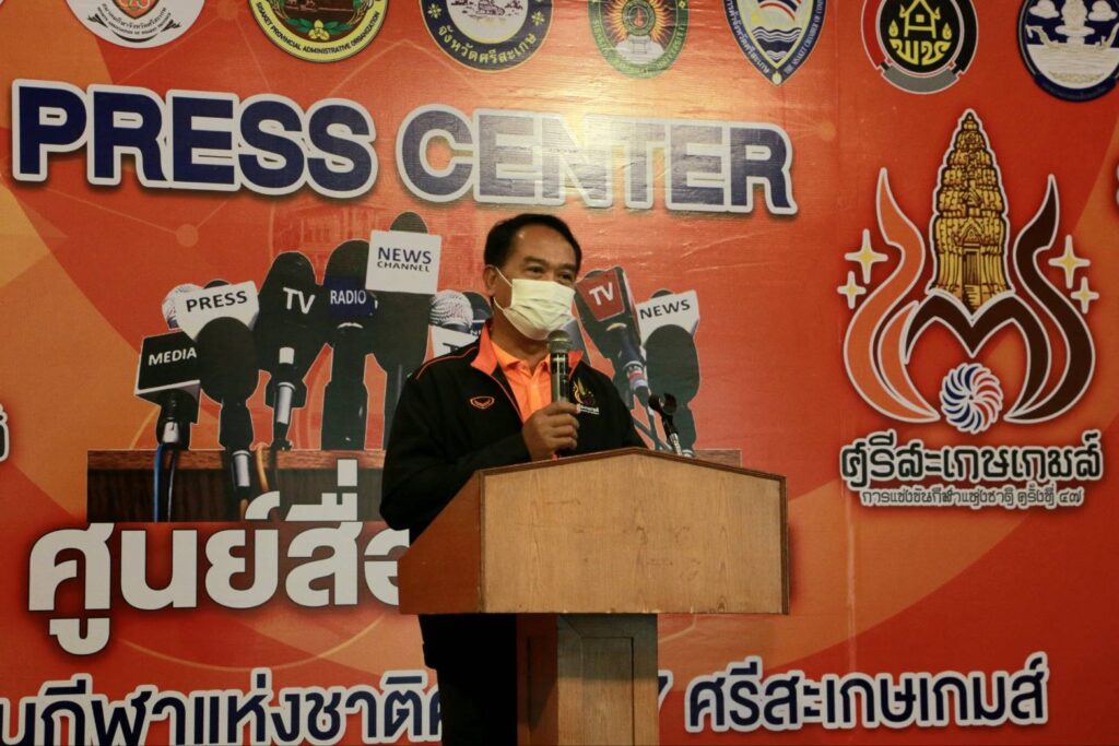 ศรีสะเกษ 5 มี.ค.-นายวัฒนา พุฒิชาติ ผู้ว่าราชการจังหวัดศรีสะเกษ เป็นประธานในพิธีเปิดศูนย์สื่อมวลชน และศูนย์อำนวยการประสานงานการถ่ายทอดสดการแข่งขันฯ T Sports 7 ในการแข่งขันกีฬาแห่งชาติ ครั้งที่ 47 “ศรีสะเกษเกมส์” และการแข่งขันกีฬาคนพิการแห่งชาติครั้งที่ 37 “นครลำดวนเกมส์” โดยมี ดร.ก้องศักด ยอดมณี ผู้ว่าการ กกท. , นายประชุม บุญเทียม รองผู้ว่าการ กกท. ฝ่ายกีฬาเป็นเลิศและวิทยาศาสตร์การกีฬา, นายวิษณุ ไล่ชะพิษ รองผู้ว่าการ กกท. ฝ่ายบริหาร, นางโปรดปราน สมานมิตร รองผู้ว่าการ กกท. ฝ่ายยุทธศาสตร์และเทคโนโลยีสารสนเทศ, นายปรีชา ลาลุน ผู้อำนวยการฝ่ายพัฒนากีฬาเป็นเลิศ, นายแพทย์มีชัย อินวู๊ด ผู้อำนวยการสำนักงานควบคุมการใช้สารต้องห้ามทางการกีฬา, นายยุธยา จีนหีต ผู้อำนวยการสำนักผู้ว่าการ และคณะผู้บริหาร ร่วมในพิธี ณ ห้องวโรบล โรงแรมพรหมพิมาน จังหวัดศรีสะเกษ
