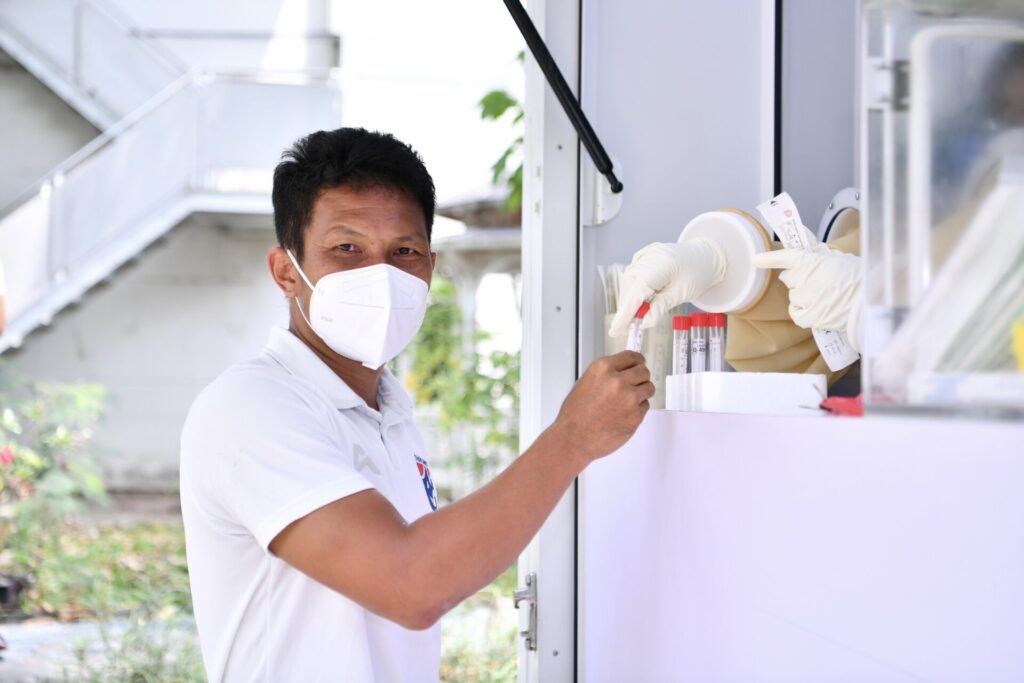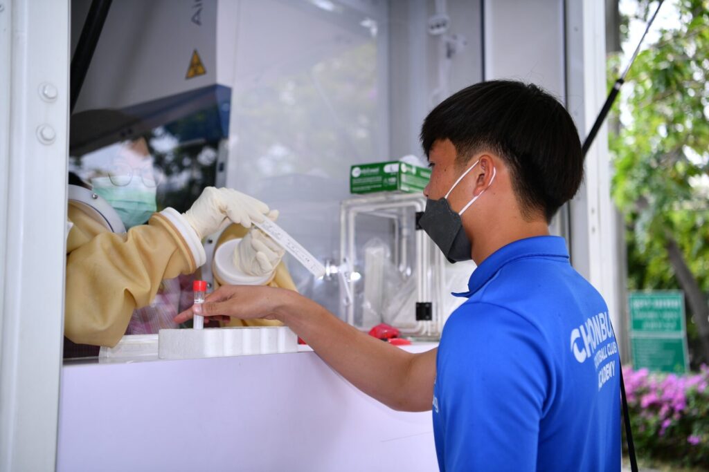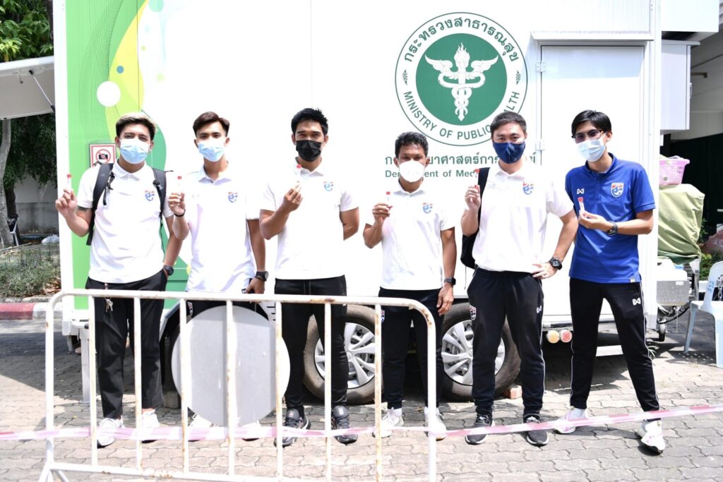 นักฟุตบอลชายทีมชาติไทย รุ่นอายุไม่เกิน 17 ปี พร้อมทีมงานสตาฟฟ์โค้ช เดินทางรายงานตัวที่ กรมวิทยาศาสตร์การแพทย์ เพื่อตรวจหาเชื้อโควิด-19 ก่อนที่จะเข้าแคมป์เก็บตัวที่ พัฒนา กอล์ฟ คลับ แอนด์ รีสอร์ทจังหวัดชลบุรี ระหว่างวันที่ 7 – 13 มีนาคม 2565