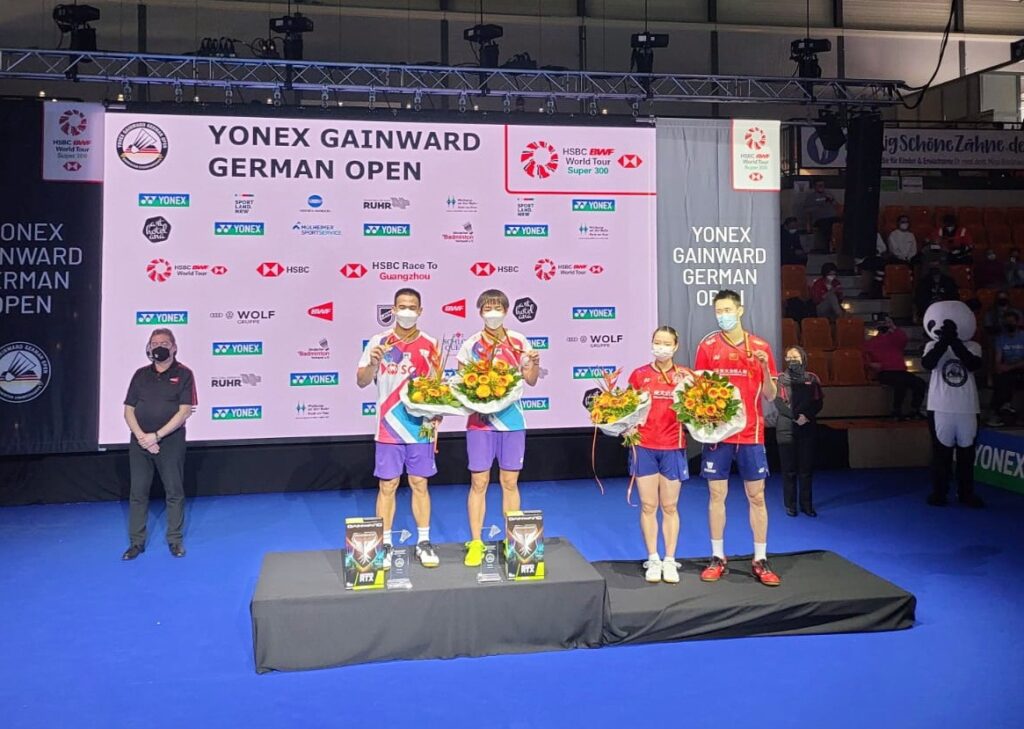 การแข่งขันแบดมินตันรายการ โยเน็กซ์ เกนวอร์ด เยอรมัน โอเพ่น 2022 ทัวร์นาเมนต์ระดับเวิลด์ทัวร์ซูเปอร์ 300 ที่เมืองมูลไฮม์ อันแดร์รูร์ ประเทศเยอรมนี เมื่อวันอาทิตย์ที่ 13 มี.ค.65 เป็นการแข่งขันในรอบชิงชนะเลิศ โดยมีนักแบดมินตันของไทยเข้าชิงถึงสองประเภท