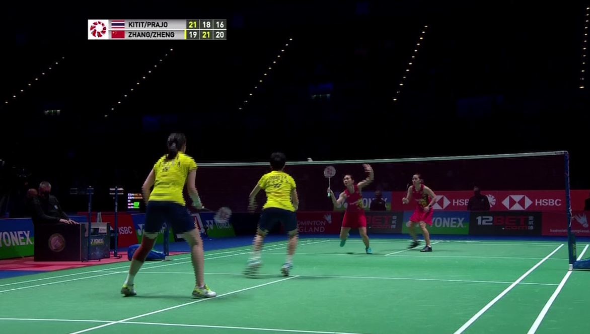 ประเภทหญิงคู่ “กิ๊ฟ” จงกลพรรณ กิติธรากุล กับ “วิว” รวินดา ประจงใจ คู่มือ 8 ของโลก พ่าย จาง ซู กับ จาง ชู เซียน จากจีน 1-2 เกม 21-19, 18-21, 16-21 พลาดเข้ารอบอย่างน่าเสียดาย. – สำนักข่าวไทย