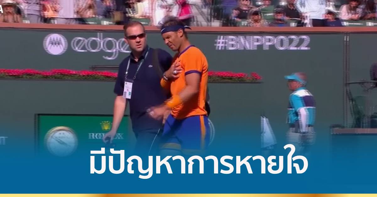 ราฟาเอล นาดาล อดีตนักเทนนิสมือ 1 ของโลกชาวสเปน เปิดเผยหลังพ่าย เทย์เลอร์ ฟริตซ์ จากสหรัฐ ในศึกบีเอ็นพี พาริบาส โอเพ่น รอบชิงชนะเลิศ ที่สหรัฐ ว่าระหว่างการแข่งขัน เขามีปัญหาเรื่องการหายใจ เวลาสูดหายใจจะเจ็บและอึดอัดมาก ตอนเคลื่อนไหวก็เจ็บแปลบเหมือนเข็มแทงตลอดเวลา มีอาการมึนหัวเล็กน้อย ทั้งอาการเจ็บและปัญหาเรื่องการหายใจทำให้เคลื่อนไหวยากขึ้น