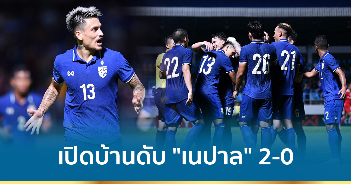 ชลบุรี 24 มี.ค.- “ฟิลิป-เชาว์วัฒน์” ยิงช่วงท้ายเกม ช่วยทีมชาติไทย ชนะ เนปาล 2-0 ฟุตบอลอุ่นเครื่องฟีฟ่า เดย์