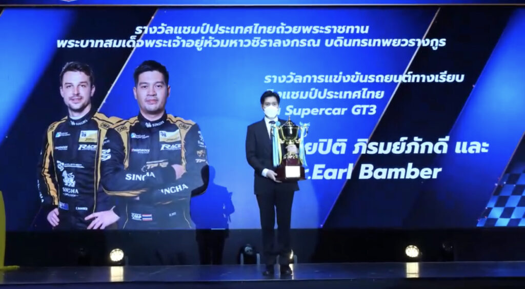 5. รถยนต์ทางเรียบชิงแชมป์ประเทศไทย รางวัลชนะเลิศรุ่น Supercar GT3 ประเภททีม ได้แก่ ทีมสิงห์ มอเตอร์สปอร์ต ทีม ไทยแลนด์