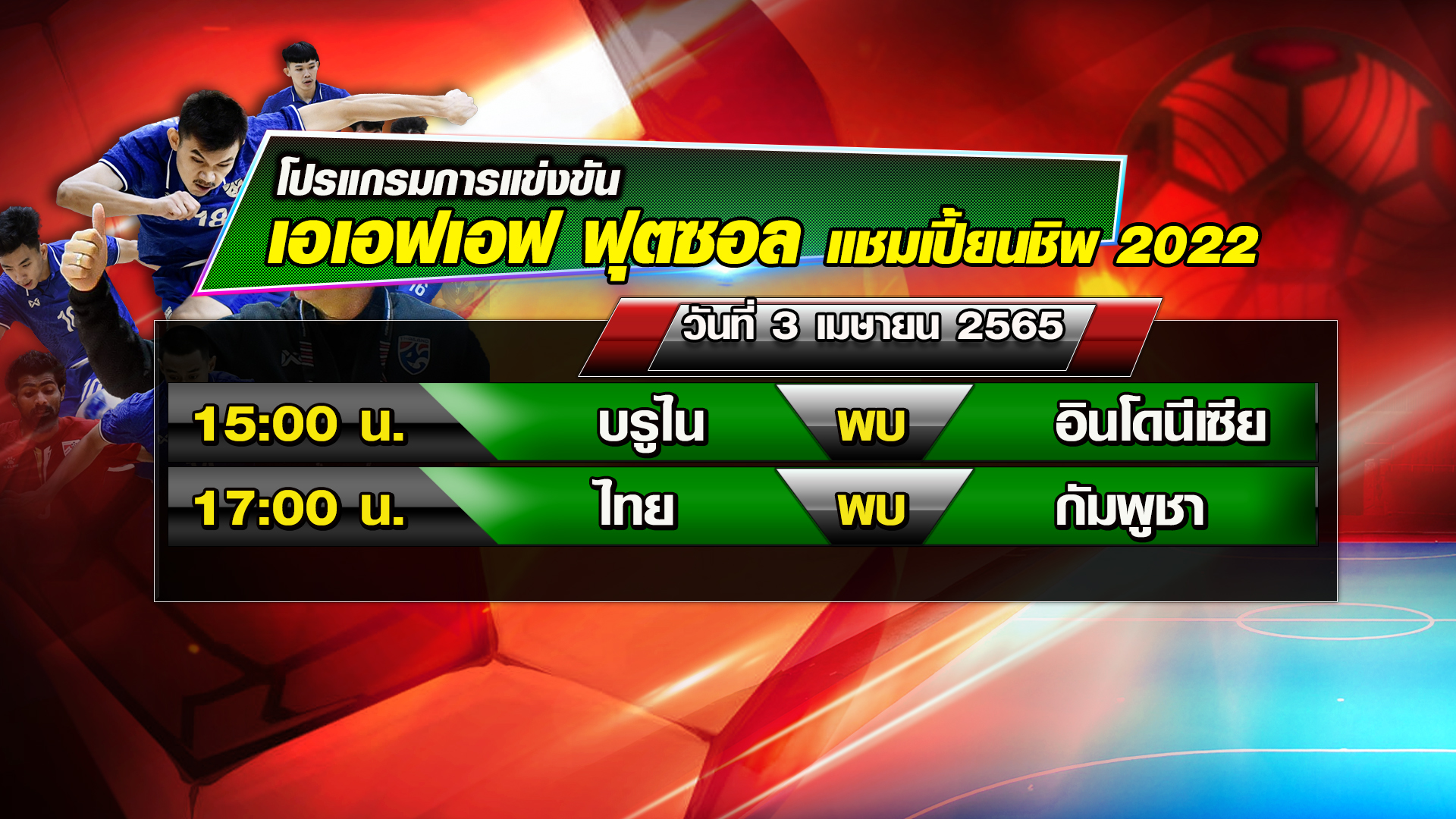 ฟุตซอลชิงแชมป์อาเซียน 2022 รอบแบ่งกลุ่ม กลุ่มเอ นัดแรก ทีมชาติไทย แชมป์ 15 สมัย พบกับ บรูไน ที่อินดอร์ สเตเดียม หัวหมาก