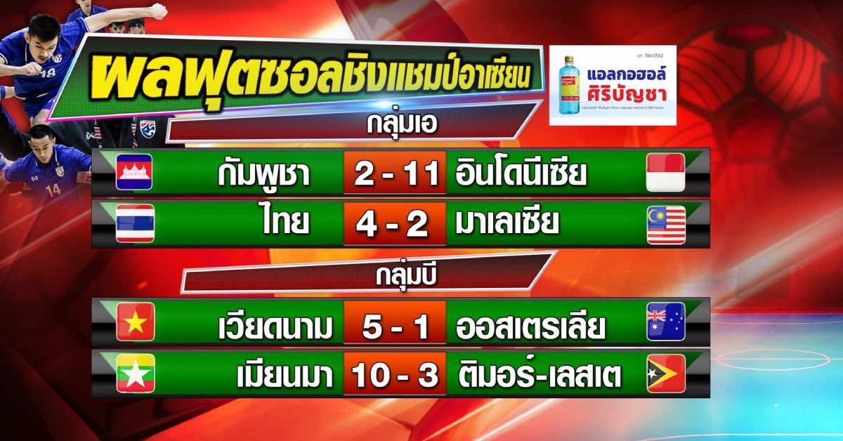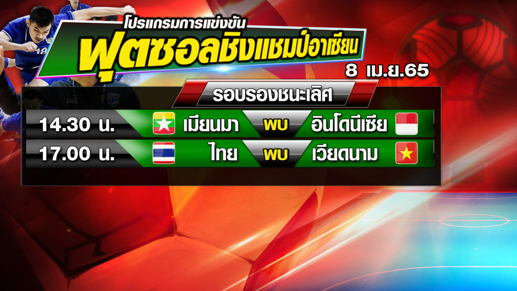 กรุงเทพฯ 6 เม.ย. – ฟุตซอลชิงแชมป์อาเซียน 2022 กลุ่มเอ นัดที่ 4 ไทย พลิกแซง ชนะ มาเลเซีย 4-2 คว้าแชมป์กลุ่มเจอเวียดนาม รอบรองฯ วันศุกร์นี้
