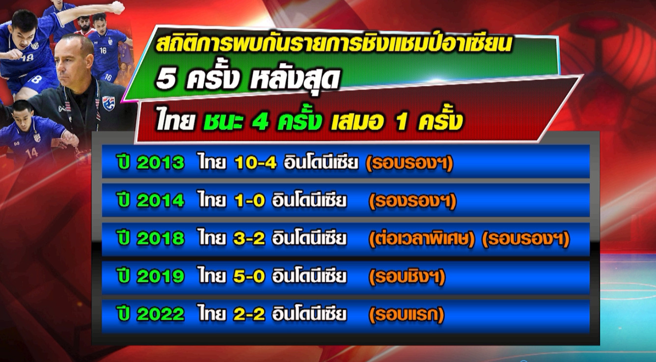 ไทย ชนะ 4 ครั้ง เสมอ 1 ครั้ง