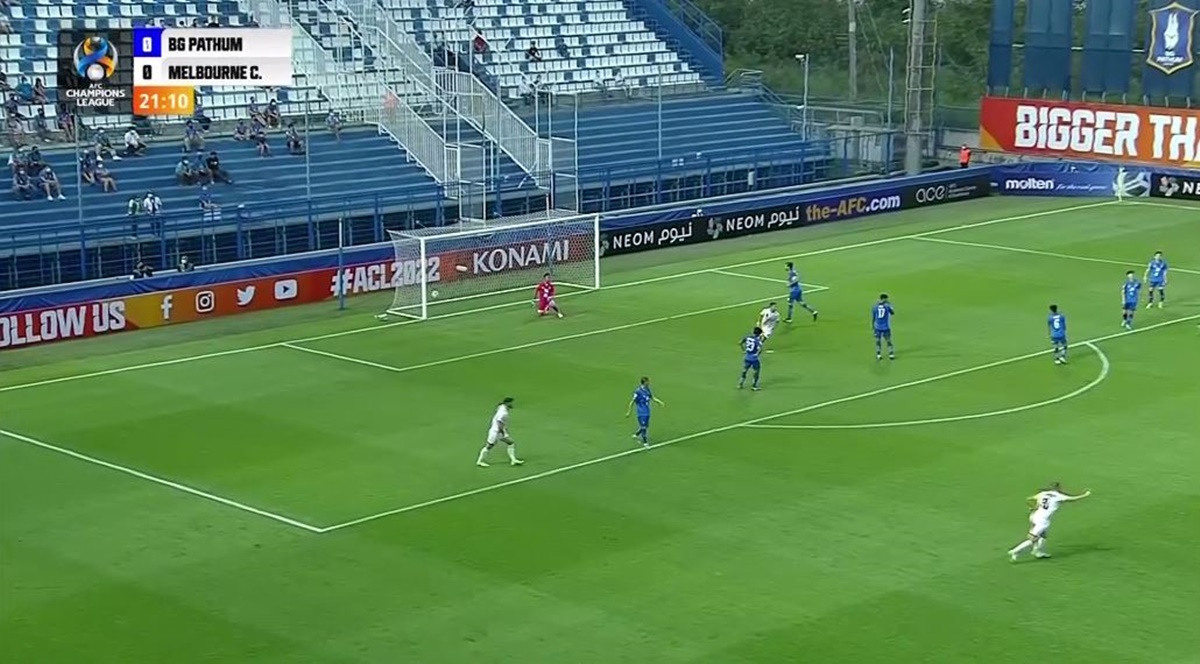 ฟุตบอลเอเอฟซี แชมเปียนส์ ลีก รอบแบ่งกลุ่ม กลุ่มจี นัดแรก ที่บีจี สเตเดียม บีจี ปทุม ยูไนเต็ด แชมป์ไทยลีก ฤดูกาลก่อน ในชุดสีน้ำเงิน เปิดบ้านพบ เมลเบิร์น ซิตี้ แชมป์เอลีก ออสเตรเลีย เกมนี้ เมลเบิร์น นำก่อน 1-0 นาทีที่ 21 จากการลากตัดมายิงของ แอนดรู นับบัวต์