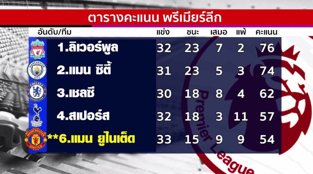 อังกฤษ 20 เม.ย. – หลังจาก ลิเวอร์พูล ถล่ม แมนเชสเตอร์ ยูไนเต็ด 4-0 ขึ้นนำจ่าฝูงของตารางพรีเมียร์ลีก ก็เกิดเสียงวิจารณ์ถึงฟอร์มการเล่นของทีม “ปีศาจแดง” มากมาย รวมถึงโอกาสในการคว้า 4 แชมป์ของ ลิเวอร์พูล. – สำนักข่าวไทย