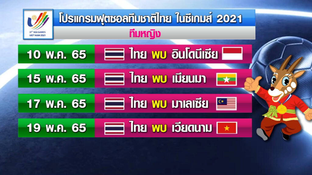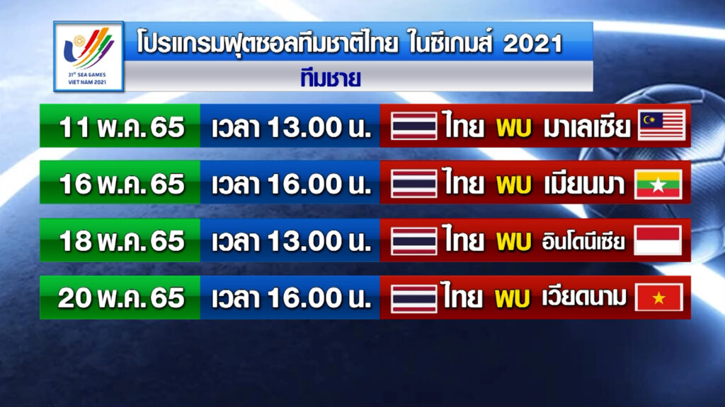 รายการต่อไปของทีมฟุตซอลชายไทยคือ ซีเกมส์ 2021 ที่ประเทศเวียดนามแข่งขันแบบพบกันหมด มีโปรแกรมดังนี้