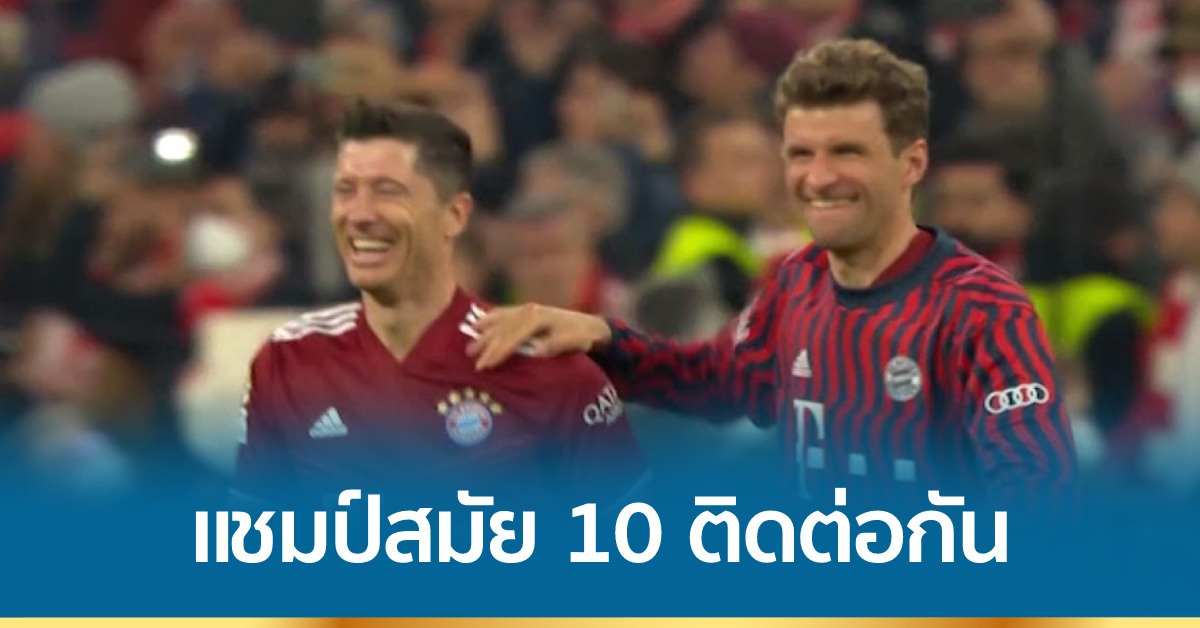 เยอรมนี 24 เม.ย. – บาเยิร์น มิวนิก ชนะ โบรุสเซีย ดอร์ตมุนด์ 3-1 ทำคะแนนทิ้งห่าง ดอร์ตมุนด์ 12 แต้ม ขณะที่เหลืออีก 3 แมตช์ ทำให้ “เสือใต้” คว้าแชมป์บุนเดสลีกา สมัยที่ 10 ติดต่อกัน