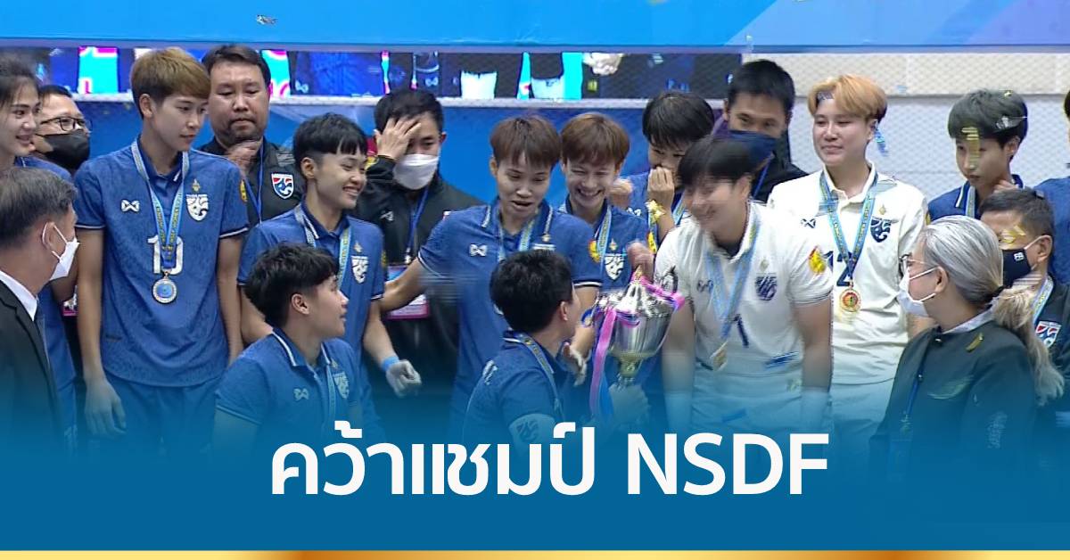 จบเกม ฟุตซอลหญิงทีมชาติไทย เสมอ อินโดนีเซีย 1-1 ทำให้มี 10 คะแนน เท่ากัน แต่ประตูได้เสียไทยดีกว่าคว้าแชมป์ NSDF ไปครองได้สำเร็จ