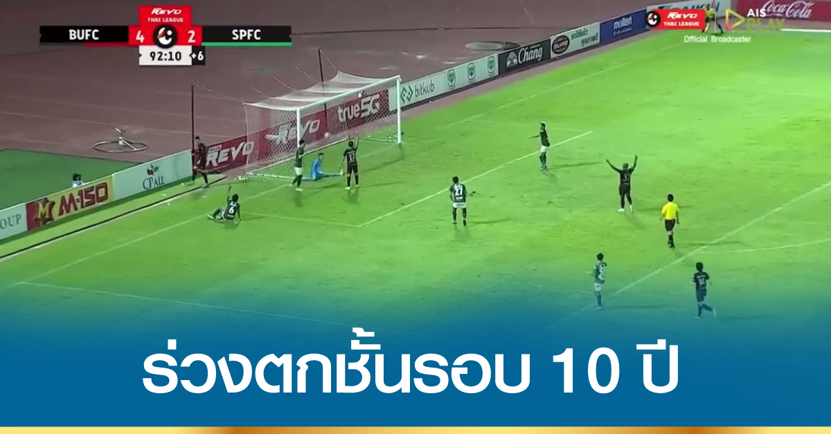 ทรู สเตเดียม 2 พ.ค. – สุพรรณบุรี เอฟซี ต้องตกชั้นไปเล่นในลีกรอง ครั้งแรกในรอบ 10 ปี หลังบุกไปแพ้ ทรู แบงค็อก ยูไนเต็ด 2-5 ในฟุตบอลไทยลีก นัดรองสุดท้าย