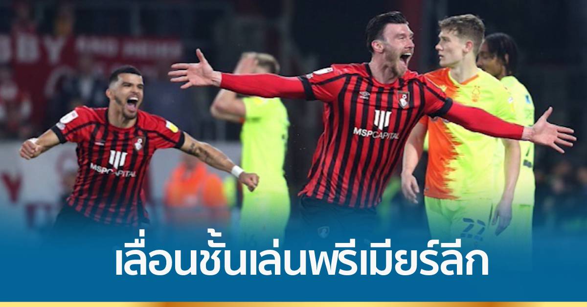 อังกฤษ 4 พ.ค. – บอร์นมัธ เปิดบ้านเฉือนชนะ น็อตติงแฮม ฟอเรสต์ 1-0 ฟุตบอลแชมเปียนชิป อังกฤษ “เดอะ เชอร์รีส์” พร้อมเลื่อนชั้นสู่พรีเมียร์ลีกฤดูกาลหน้า