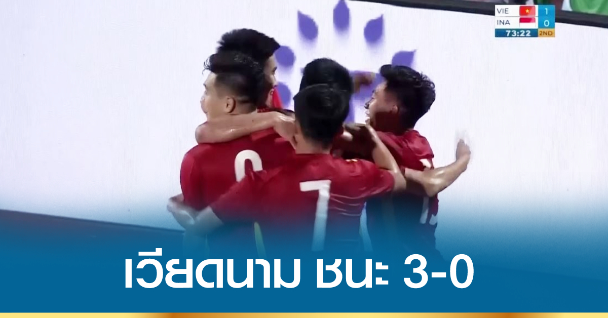 เวียดนาม 7 พ.ค. – เจ้าภาพ เวียดนาม โชว์ฟอร์มถล่มชนะ อินโดนีเซีย 3-0 ฟุตบอลชายซีเกมส์ ครั้งที่ 31 ที่ประเทศเวียดนาม