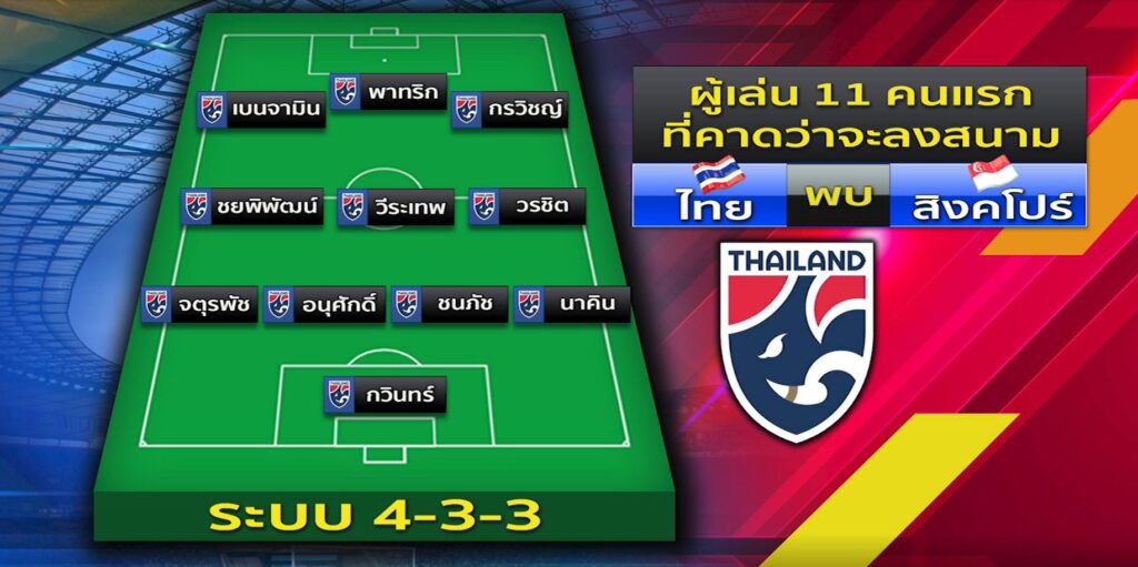 ความเคลื่อนไหวของทีมฟุตบอลชายทีมชาติไทยที่เตรียมลงสนามนัดที่ 2 ในกลุ่มบี กับสิงคโปร์ วันนี้เวลา 19.00 น. ช่อง 9 MCOT HD หมายเลข 30 ถ่ายทอดสด