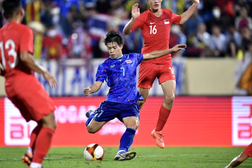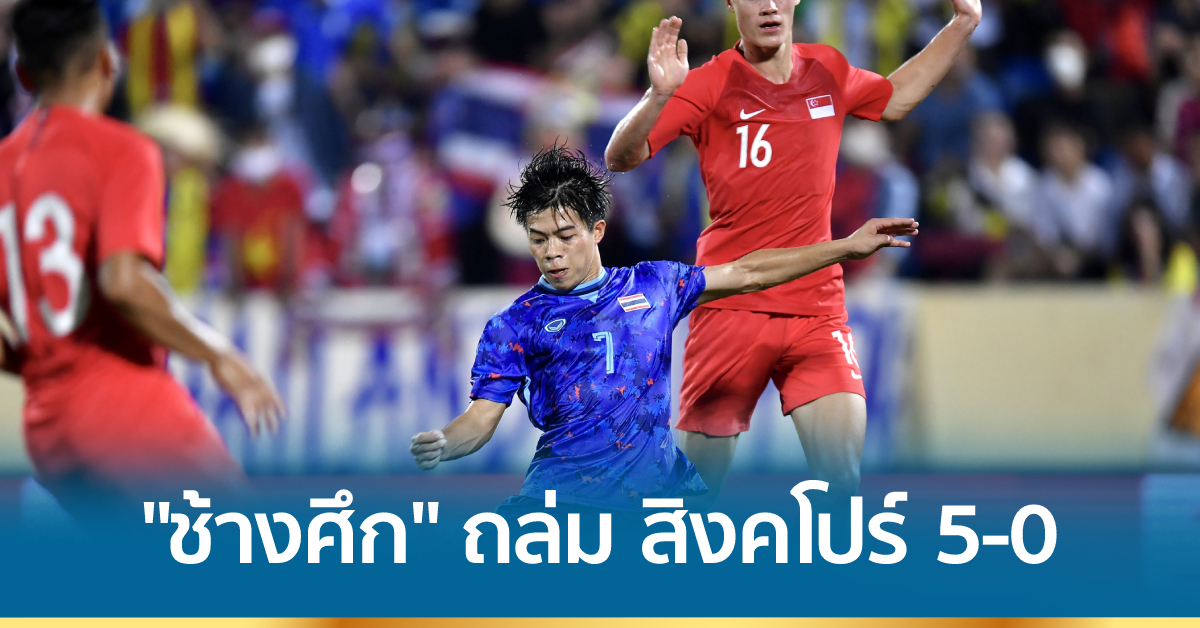 เวียดนาม 9 พ.ค. – “ช้างศึก” ทีมชาติไทยคืนฟอร์ม ถล่ม สิงคโปร์ 5-0 ทะยานขึ้นจ่าฝูง กลุ่มบี การแข่งขันฟุตบอลชาย ซีเกมส์ นัดที่ 2