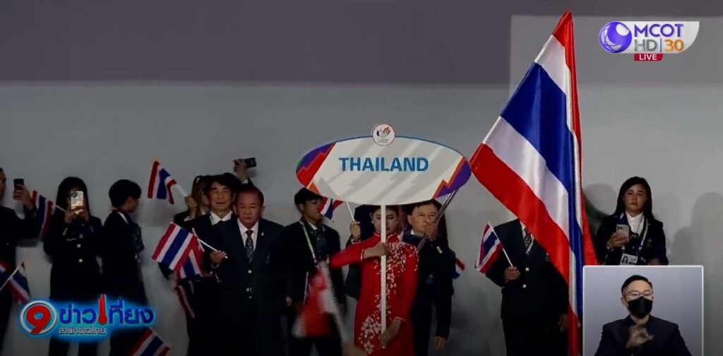 ชุดแรกคือ friendly vietnam เพื่อต้อนรับสู่ประเทศเวียดนาม ต่อด้วย strong southeast asia ที่เข้าสู่การเดินพาเหรดของ 11 ชาติ ประเทศไทยเข้าสู่สนามในลำดับที่ 9 โดยมี “ฟร้อง” สุวิจักขณ์ ขุนทอง นักกีฬายูยิตสู รุ่น 62 กก.ชาย วัย 20 ปี เจ้าของเหรียญเงินชิงแชมป์โลก ยู-21 และเหรียญทองชิงแชมป์เอเชีย ทำหน้าที่ถือธงไตรรงค์นำคณะนักกีฬาทีมชาติไทยเข้าสู่สนาม เจ้าภาพให้ชาติต่างๆ ส่งนักกีฬาร่วมเดินพาเหรดได้จำนวน 31 คน ตามมาตรการโควิด และยังตรงกับตัวเลขครั้งที่ 31 ของซีเกมส์ครั้งนี้