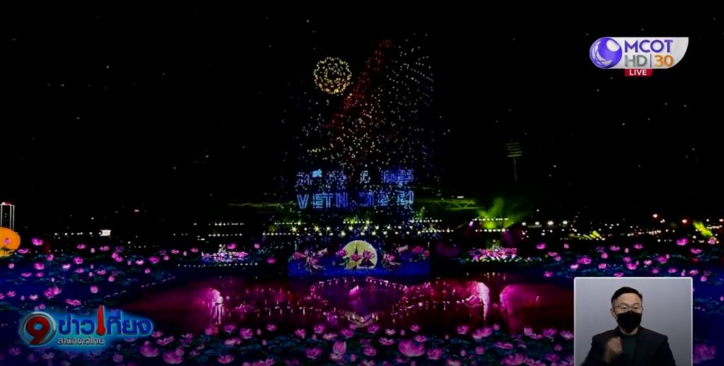 ปิดท้ายที่ชุด shinning southeast asia ที่มีพิธีการจุดไฟในกระถาง โดย กวั๊ก ถิ ลาน นักวิ่งสาววัย 26 ปี เจ้าของเหรียญทองเอเชียนเกมส์ 2018 ในรายการวิ่งข้ามรั้ว 400 เมตร จุดคบเพลิงกลางสนาม ก่อนที่คบเพลิงเล็กนั้นกลายเป็นใหญ่ขึ้นอยู่กลางสนามมิดิงห์ เป็นสัญญาณว่าซีเกมส์ 2021 เปิดฉากขึ้นแล้ว จะชิงชัยกัน 527 เหรียญทอง จาก 40 ชนิดกีฬา จนถึงวันที่ 23 พฤษภาคมนี้.-สำนักข่าวไทย