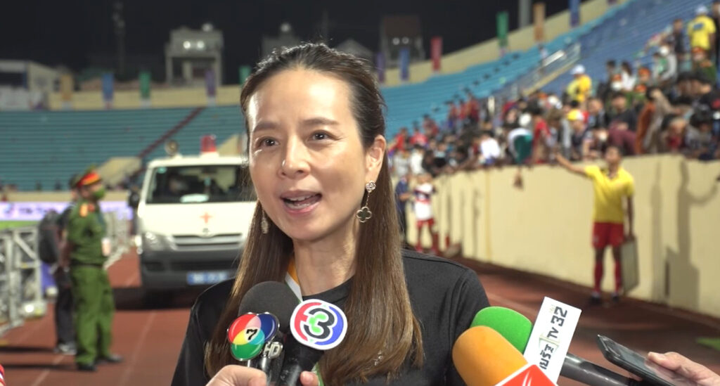 “มาดามแป้ง” นวลพรรณ ล่ำซำ ผู้จัดการทีมชาติไทยกล่าวขอบคุณสปิริตของเคสุกะ ฮอนดะ เฮดโค้ชของทีมกัมพูชา และนักเตะกัมพูชาที่เล่นอย่างเต็มที่่ จนเสมอกับมาเลเซียได้ เพราะไทยอยากเป็นอันดับ 1 ของสายเพื่อจะได้เล่นที่สนามแห่งนี้ต่อ
