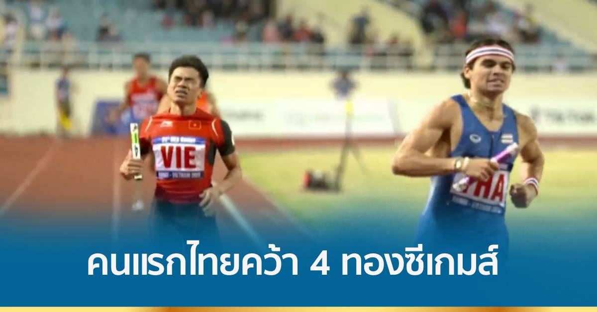 เวียดนาม 19 พ.ค. – จอชชัว โรเบิร์ต แอทคินสัน นักวิ่งหนุ่มลูกครึ่งไทย-ออสเตรเลีย กลายเป็นนักกรีฑาไทยคนแรกในรอบ 21 ปี ที่คว้า 4 เหรียญทองในซีเกมส์ครั้งเดียว หลังเพิ่งคว้าทองในรายการผลัด 4×400 ชาย