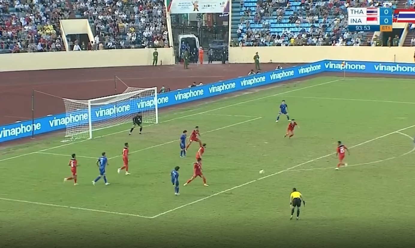 ช่วงต่อเวลาพิเศษ นาทีที่ 94 วีระเทพ ป้อมพันธุ์ หมุนตัวซัดด้วยขวาอย่างสุดสวยให้ไทยขึ้นนำ 1-0 จากนั้นท้ายเกมยาย่า อัลมูลล่า ผู้ตัดสินจากสหรัฐอาหรับเอมิเรสต์ ต้องทำงานหนัก เพราะสองทีมเริ่มอารมณ์เดือดกันมากขึ้น วิลเลียม ไวเดอร์เฌอ ของไทยโดนใบเหลือง-แดงไล่ออกไปก่อน จากนั้นผู้เล่นอินโดนีเซีย โดนไล่ออกถึง 3 คนจากจังหวะอัดใส่ พาทริก กุสตาฟสัน แล้วเกิดการชลมุนกัน ทำให้อินโดนีเซียเหลือผู้เล่นเพียง 8 คน จบเกมทีมชาติไทยชนะอินโดนีเซีย 1-0 ผ่านเข้าไปชิงชนะเลิศกับ เวียดนาม เจ้าภาพ และแชมป์เก่าในวันที่ 22 พฤษภาคมนี้ เวลา 19.00 น.