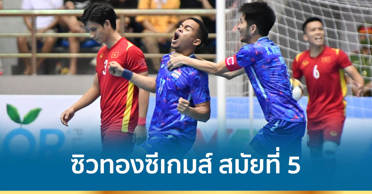 เวียดนาม 20 พ.ค.- “ช้างศึกโต๊ะเล็ก” คว้าแชมป์สมัยที่ 5 หลังเอาชนะเวียดนาม 2-0 ศึกฟุตซอลชาย กีฬาซีเกมส์ ครั้งที่ 31 นัดสุดท้าย
