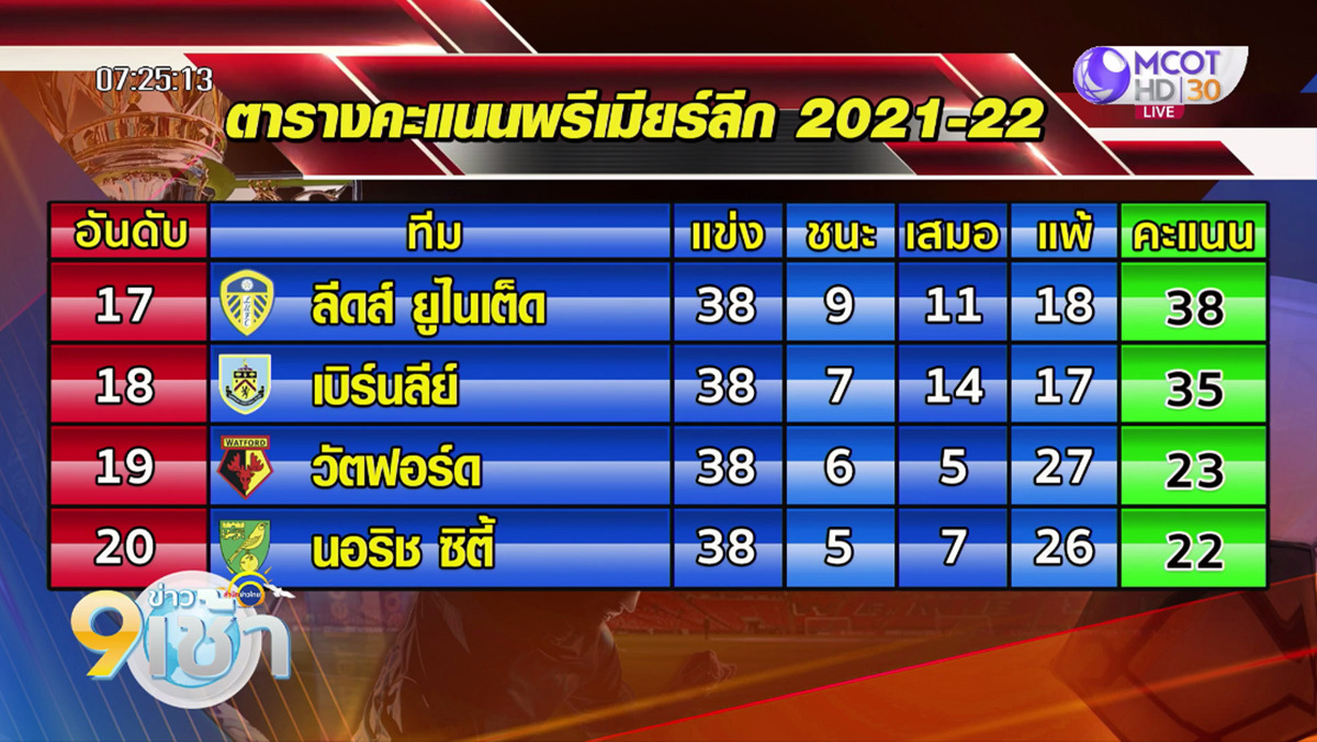 ขณะที่ 3 ทีมที่ตกชั้น คือ เบิร์นลีย์ วัตฟอร์ด และ นอริช ซิตี้