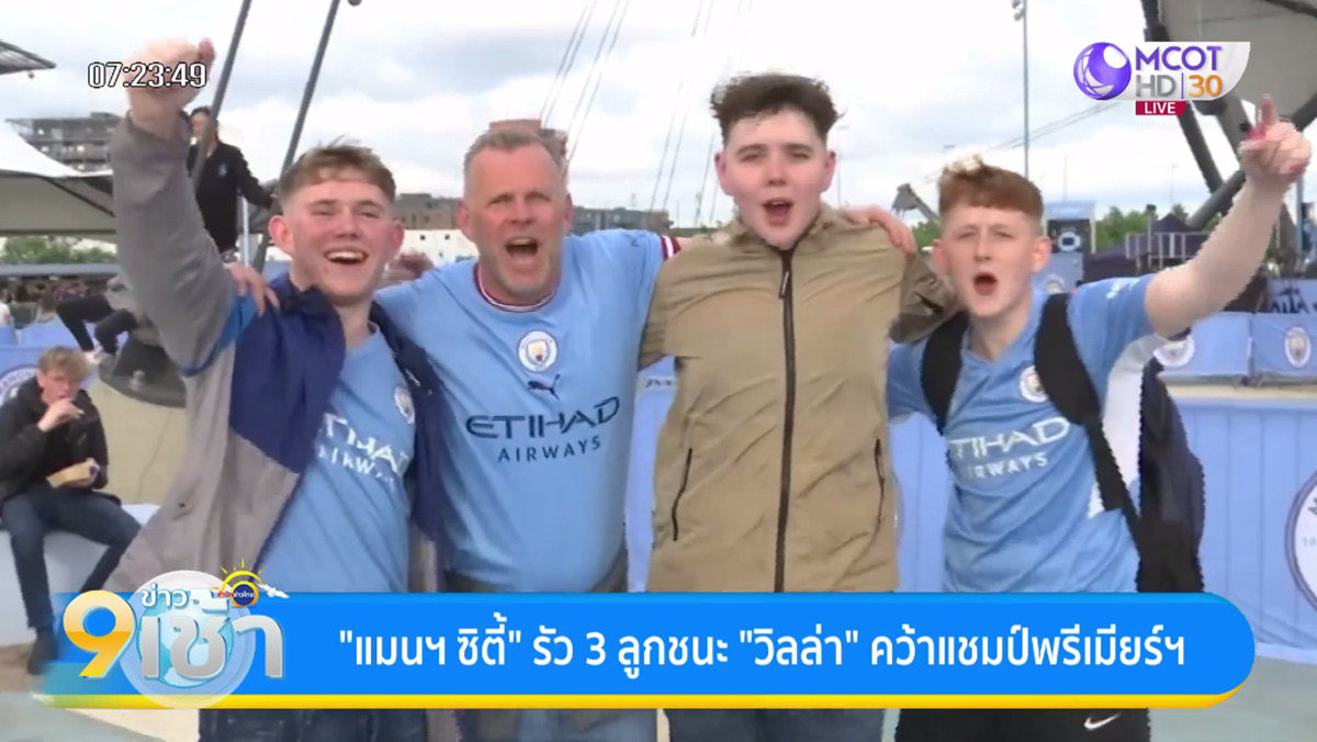 อังกฤษ 23 พ.ค. – “เรือใบสีฟ้า” แมนเชสเตอร์ ซิตี้ ที่ตามหลัง แอสตัน วิลล่า 2 ลูก กลับมายิง 3 ประตูรวด คว้าแชมป์พรีเมียร์ลีก อังกฤษ ได้สำเร็จ
