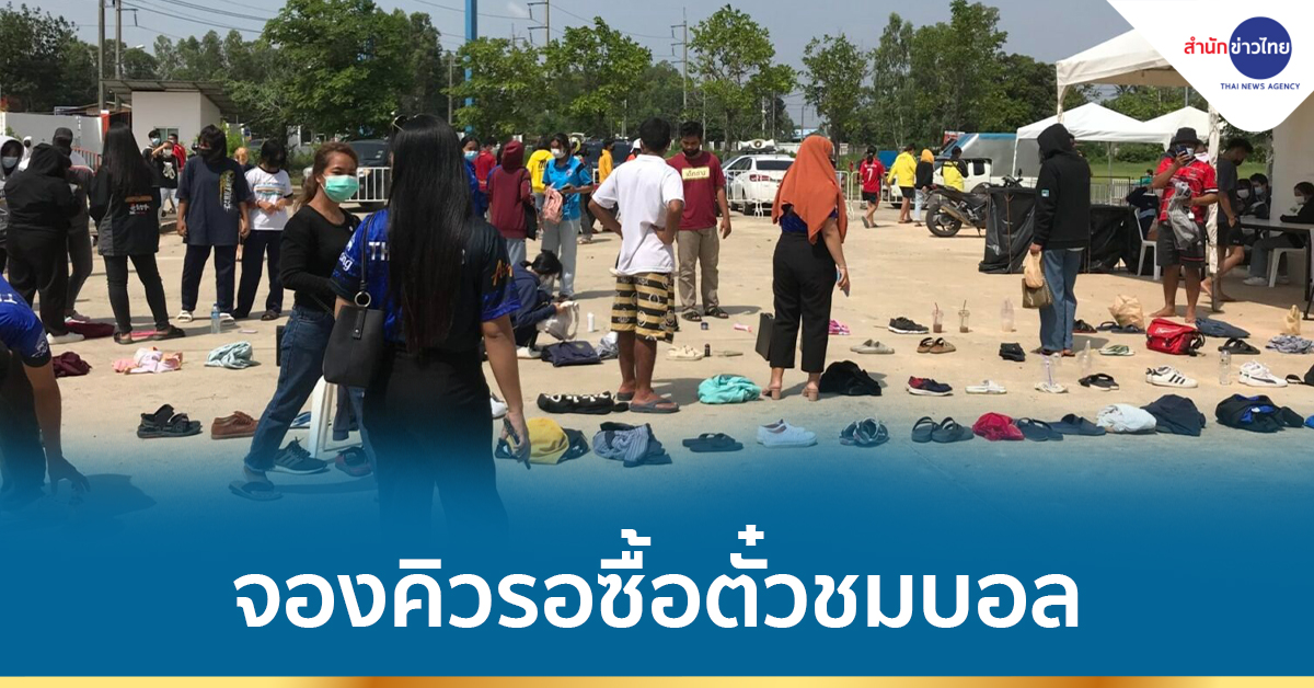 ศรีสะเกษ 27 พ.ค.- สุดคึกคัก! แฟนบอลชาวศรีสะเกษ ใช้รองเท้าวางจองคิวรอซื้อตั๋วชมฟุตบอลทีมไทย ดวล เติร์กเมนิสถาน เย็นนี้ 17.30 น.