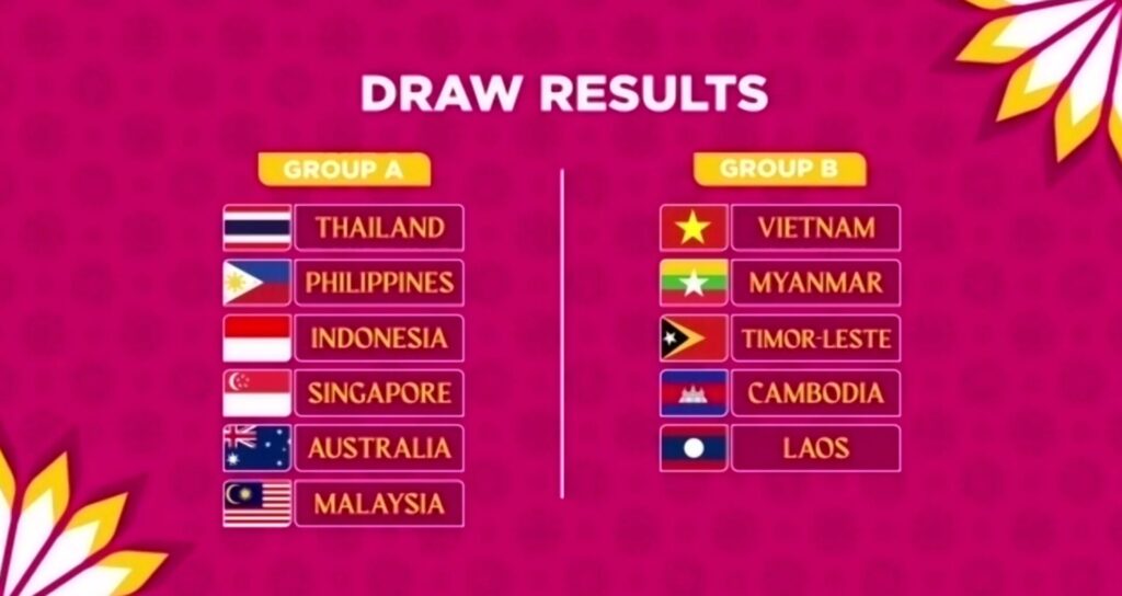 กลุ่มเอ – ไทย, ฟิลิปปินส์, อินโดนีเซีย, สิงคโปร์, ออสเตรเลีย, มาเลเซีย กลุ่มบี – เวียดนาม, เมียนมา, ติมอร์เลสเต, กัมพูชา, สปป,ลาว