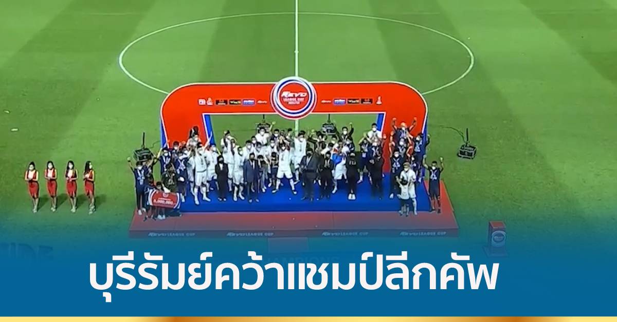 ฟุตบอลรีโว่ ลีกคัพ รอบชิงชนะเลิศ ที่บีจี สเตเดียม พีที ประจวบ เอฟซี แชมป์เก่าปี พบ บุรีรัมย์ ยูไนเต็ด รองแชมป์เก่า ซึ่งเป็นการรีเเมตซ์นัดชิงชนะเลิศในปี 2019 เกมนี้ บุรีรัมย์ ขึ้นนำก่อน 1-0 จาก โจนาธาน โบลินกิ นาทีที่ 35 จากนั้นนาที 61 โบลินกิ มาทำประตูให้บุรีรัมย์นำห่าง 2-0 แต่นาทีที่ 69 ประจวบเหลือผู้เล่น 10 คน หลัง สหรัฐ ปองสุวรรณ กองหลังโดนใบแดงไล่ออกจากสนามจากจังหวะไปทำฟาวล์ ไมคอน มาร์เกวซ ตัวรุกของบุรีรัมย์ จากนั้นบุรีรัมย์ ที่มีผู้เล่นมากกว่ามาได้ประตูเพิ่มจาก พีรดนย์ ฉ่ำรัศมี มาทำประตูให้ทีมนำ 3-0 ในนาทีที่ 90 และศุภณัฏฐ์ เหมือนตา มายิงปิดท้ายนาทีที่ 90+1 ช่วยให้บุรีรัมย์ ล้างตาชนะ พีที ประจวบ ไปขาดลอย 4-0 ทำให้คว้าแชมป์ พร้อมกับรับเงินรางวัล 5 ล้านบาท นับเป็นแชมป์รายการนี้สมัยที่ 6 ของบุรีรัมย์อีกด้วย และยังคว้าทริปเบิลแชมป์ในฤดูกาล หลังคว้าแชมป์รีโว่ไทยลีก, ฟุตบอลช้างเอฟเอ คัพ และรีโว่ ลีกคัพ. – สำนักข่าวไทย