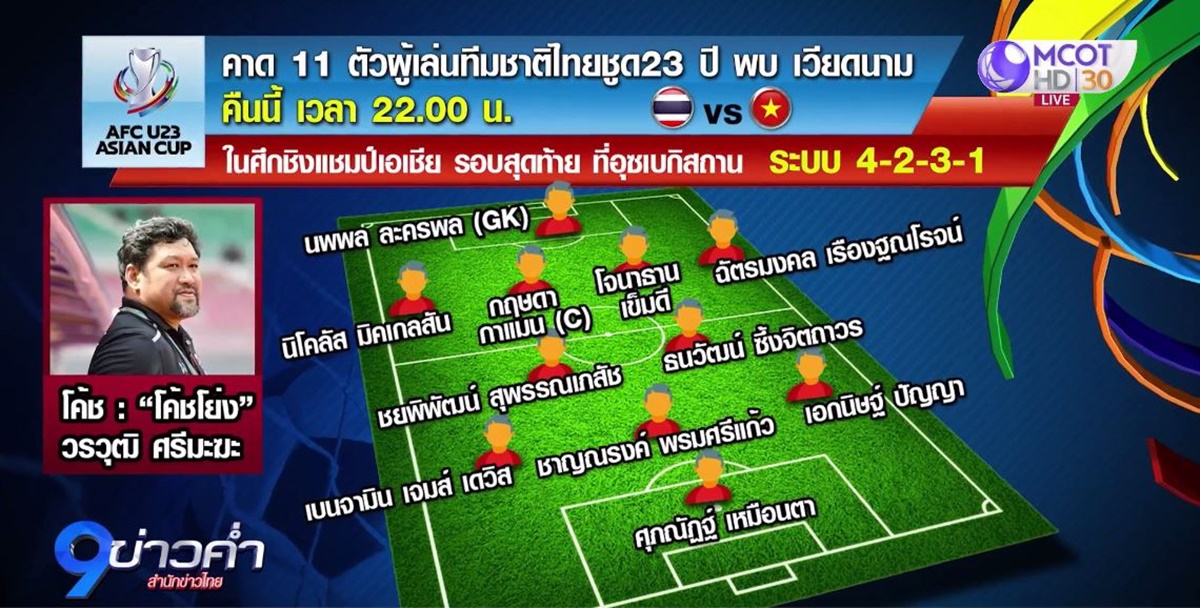 สำหรับทีมชาติไทย จะพบ เวียดนาม ที่สนามบุนยอดกอร์ สเตเดียม ประเทศอุซเบกิสถาน เวลา 22.00 น. คืนนี้. – สำนักข่าวไทย