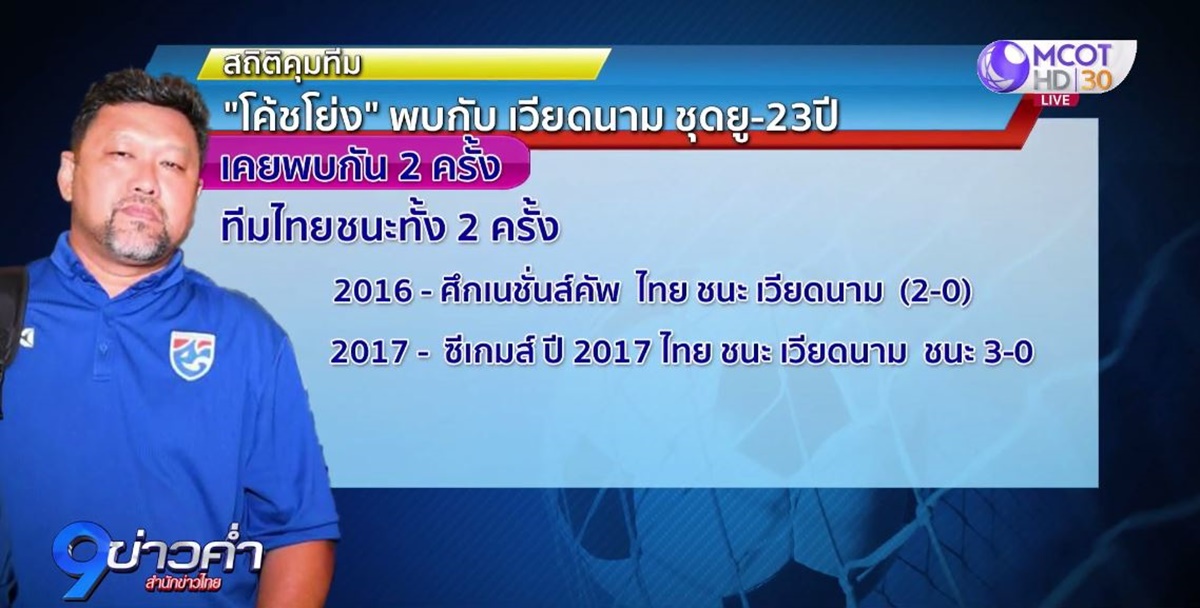ส่วนสถิติการคุมทีมของ “โค้ชโย่ง” ที่พบกับทีมชาติเวียดนาม ชุดยู-23 ปี เคยพบกัน 2 ครั้ง ชนะทั้ง 2 ครั้ง โดยชนะ เวียดนาม 2-0 ในศึกเนชันส์ คัพ ปี 2016 และซีเกมส์ ปี 2017 ที่ประเทศมาเลเซีย ชนะ 3-0
