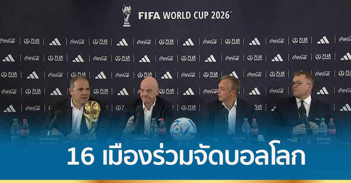 17 มิ.ย. – ฟุตบอลโลกปี 2026 ได้ 16 เมือง จาก 3 ประเทศ ที่จะร่วมกันจัดการแข่งขันแล้ว ประธานฟีฟ่าเชื่อว่าจะเป็นประวัติศาสตร์หน้าใหม่ของศึกฟุตบอลโลก