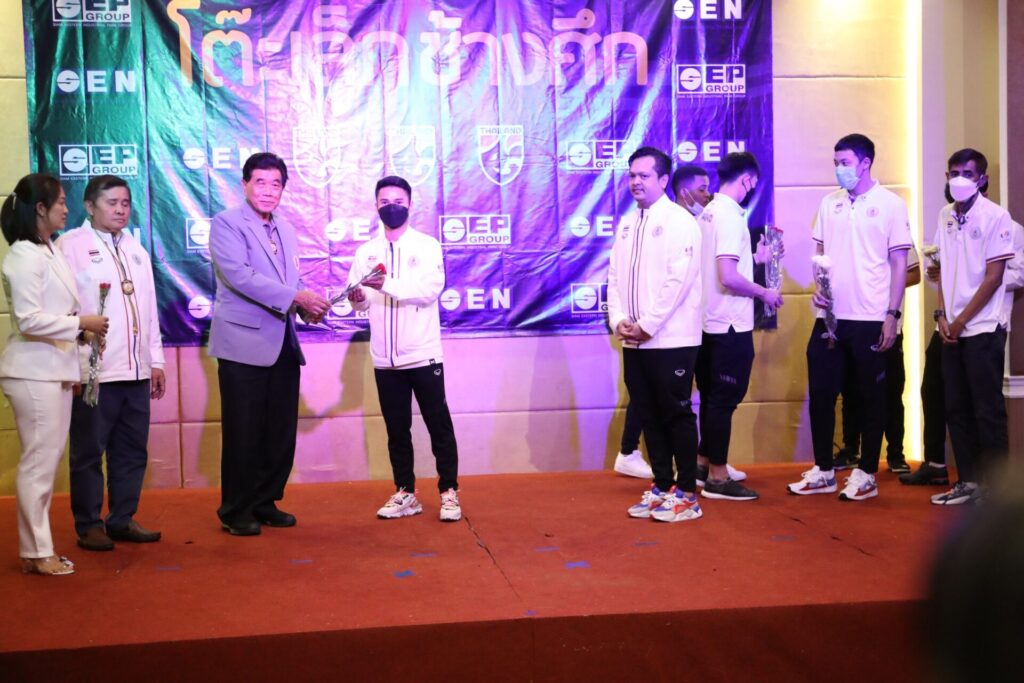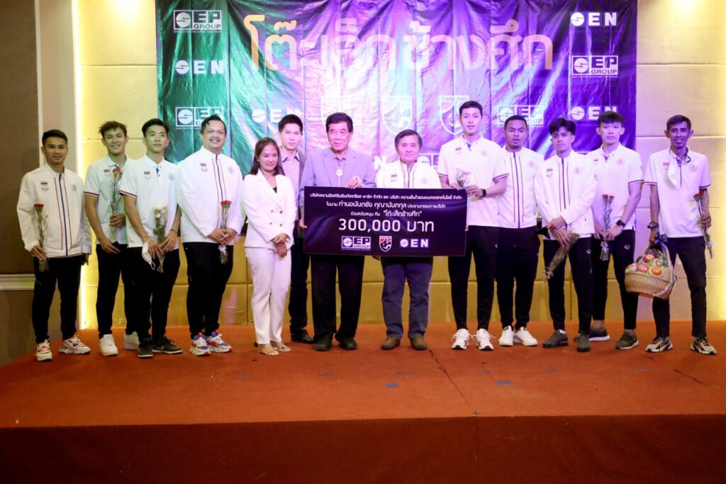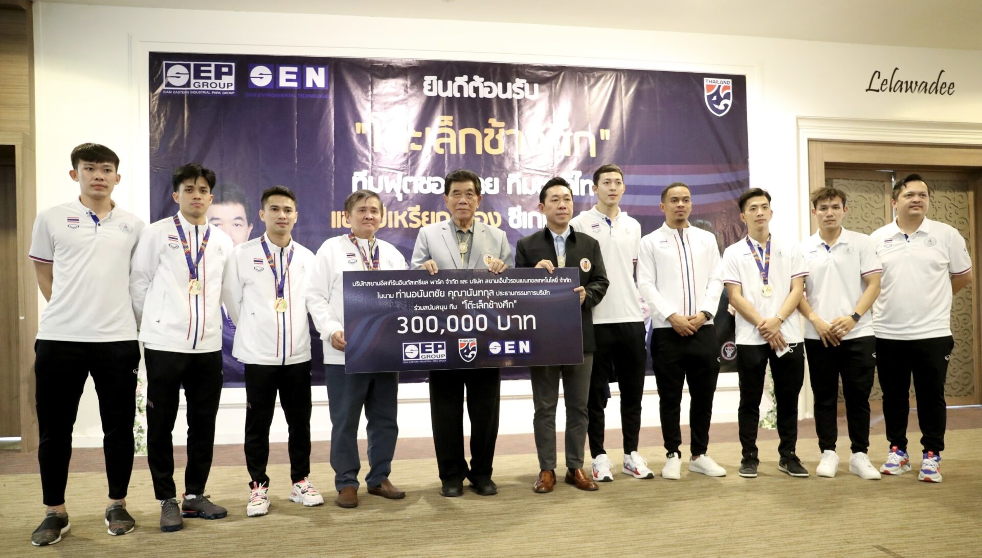 สมุทรปราการ 21 มิ.ย.65-นายอนันตชัย คุณานันทกุล นายกสมาคมสมาชิกรัฐสภาไทยและประธานกรรมการบริษัท สยามอีสเทิร์น อินดัสเตรียล พาร์ค จำกัด และนายเอกสิทธิ์ คุณานันทกุล เลขานุการรัฐมนตรีว่าการกระทรวงดิจิทัลเพื่อเศรษฐกิจและสังคม ร่วมมอบเงินอัดฉีดพิเศษเพื่อเป็นขวัญและกำลังใจให้ทีมฟุตซอลชายทีมชาติไทยที่สร้างความสุขให้กับคนไทยทั้งประเทศร่วม 70 ล้านคน โดยมี “บิ๊กสุ” สุทิน บัวตูม ผู้จัดการทีมฟุตซอลชายทีมชาติไทยพร้อมทัพนักเตะและทีมงานผู้ฝึกสอนร่วมรับมอบที่บริษัท สยามอิสเทิร์น อินดัสเตลียล พาร์ค จำกัด