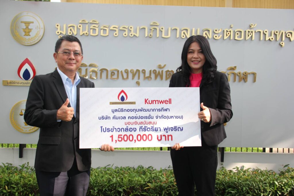 นายบุญศักดิ์ เกียรติจรูญเลิศ ประธานกรรมการบริหารบริษัท คัมเวล คอร์ปอเรชั่น จำกัด(มหาชน) นายภานพ ใจเกื้อ รองเลขานุการ ผู้บริหารโครงการมูลนิธิกองทุนพัฒนาการกีฬา และนางสายฝน ฟูเจริญ ในฐานะมารดาของโปรข้าวกล้อง “โปรข้าวกล้อง” จีรัตติยา ฟูเจริญ ร่วมกันลงนามในสัญญาให้การสนับสนุน “โปรข้าวกล้อง” ระยะเวลาระหว่าง ก.ค.2565 – ธ.ค.2566 รวมเป็นเงินสนับสนุนทั้งสิ้น 1.5 ล้านบาท โดยจะมีการประเมินผลงานในทุก 6 เดือน