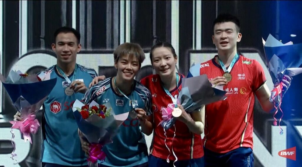 ส่วน ประเภทคู่ผสม “บาส” เดชาพล พัววรานุเคราะห์ กับ “ปอป้อ” ทรัพย์สิรี แต้รัตนชัย คู่มืออันดับ 2 ของโลก แพ้ให้กับ เจิ้ง ซีเหว่ย กับ หวง หย่าเฉียง คู่มืออันดับ 1 ของโลกจากจีน 0-2 เกม 13-21 และ 18-21 ทำให้ “บาส” กับ “ปอป้อ” ได้รองแชมป์รับเงินรางวัล 23,625 ดอลลาร์สหรัฐ หรือประมาณ 815,000 บาท.