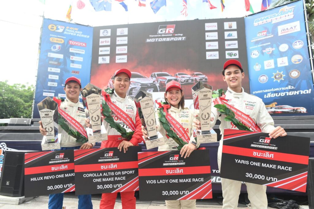 ต่อเนื่องความเร็วแรงของนักแข่งรุ่นใหญ่ โคโรลล่า อัลติส จีอาร์ สปอร์ต วันเมคเรซ ที่นอกจากจะมีรางวัลเป็นแชมป์ประจำสนามแล้ว ยังมีเดิมพันสำหรับแชมป์ประจำปีของรุ่นนี้ที่จะได้รับสิทธิ์เข้าร่วม “Toyota Gazoo Racing Team Thailand” ลงแข่งในรายการระดับอาชีพต่อไป ต่างคนต่างชิงชัยแบบไม่ลดละ ผลปรากฏว่าแชมป์ประจำสนามแรก อันดับ 1 คือ ณ ดล วัฒนธรรม หมายเลข 23, อันดับ 2 คือ เคนทาโร่ ชิบะ หมายเลข 3, อันดับ 3 คือ อณิวัฏ ล้อมมหาดไทย หมายเลข 44, อันดับ 4 คือ สุรศักดิ์ ดาเก็ง หมายเลข 19 และอันดับ 5 คือ อัฐพล แก้วอาษา หมายเลข 26