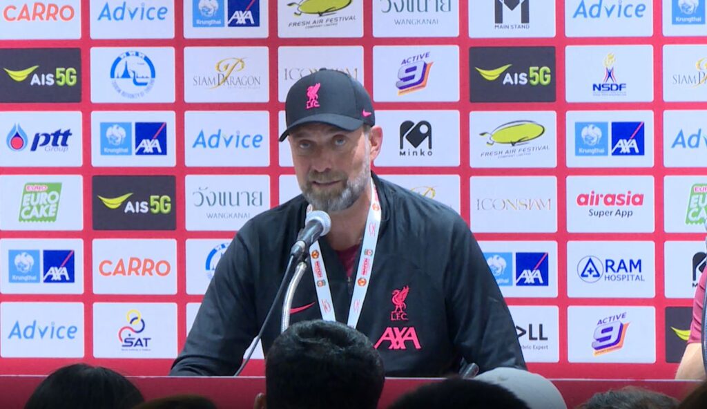 เจอร์เกน คล็อปป์ กุนซือหงส์แดงลิเวอร์พูล กล่าวหลังจบเกมแดงเดือดรายการ “เดอะ แมตช์ แบงค็อก เซนจูรี่ คัพ 2022” ที่สนามราชมังคลากีฬาสถาน ซึ่งแมนฯ ยูไนเต็ด เอาชนะ ลิเวอร์พูล 4-0 ว่าภาพรวมสำหรับแมตช์นี้ทุกอย่างถือว่าดีมากๆ ทั้งการต้อนรับ รวมถึงบรรยากาศ แต่ผลการแข่งขัน ไม่เป็นที่น่าพอใจ นักเตะเล่นได้ไม่สม่ำเสมอ ส่วนหนึ่งเพราะเกมนี้อาจจะเร็วเกินไปสำหรับลิเวอร์พูล ทำให้ยังมีจังหวะผิดพลาดอยู่ แต่จะทำให้นักเตะได้รับประสบการณ์กลับไป โดยเฉพาะเด็กๆ ที่ยังต้องเรียนรู้