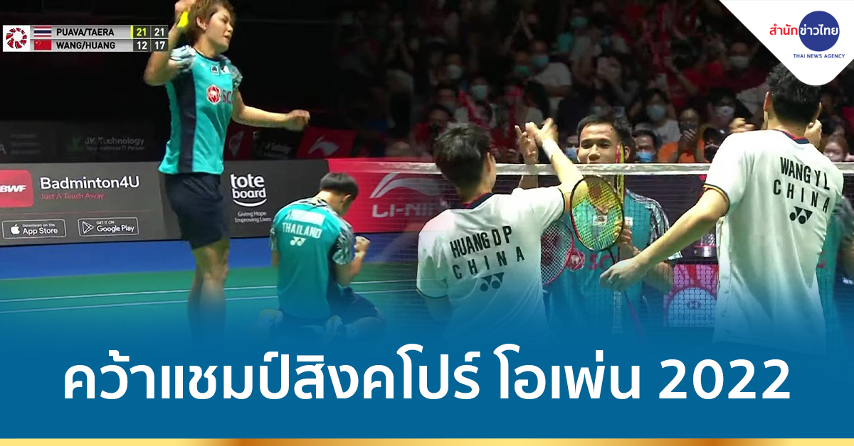 “บาส” เดชาพล พัววรานุเคราะห์ กับ “ปอป้อ” ทรัพย์สิรี แต้รัตนชัย ดีกรีแชมป์เก่าในปี 2019 คู่มือวาง 1 ของรายการ คู่มืออันดับ 2 ของโลก สามารถย้ำแค้น หวัง ยี่ลู่ กับ หวง ดองปิง คู่มือวางอันดับ 3 ของรายการ คู่มืออันดับ 4 ของโลกจากจีน ได้อีกครั้ง ด้วยการเอาชนะไปได้ 2-0 เกม 21-12 และ 21-17 คว้าแชมป์แบดมินตัน “สิงคโปร์ โอเพ่น 2022” ทัวร์นาเมนต์ระดับเวิลด์ทัวร์ 500 เป็นสมัยที่ 2 ต่อจากปี 2019 และเป็นการคว้าแชมป์รายการที่ 2 ในปีนี้ของทั้งคู่ พร้อมรับเงินรางวัล 29,230 เหรียญสหรัฐ หรือประมาณ 1,052,280 บาท